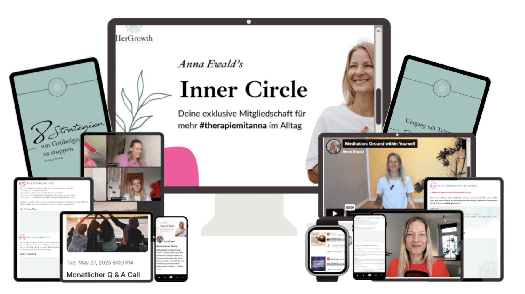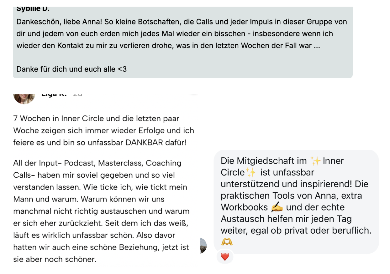 Der Inner Circle ist meine exklusive Therapie-Community für dein persönliches Wachstum mit all den Tools und die persönliche Unterstützung, die du brauchst, um die Beziehung zu dir selbst zu transformieren und dir die liebevollen und erfüllenden Beziehungen aufzubauen, die du verdienst.
